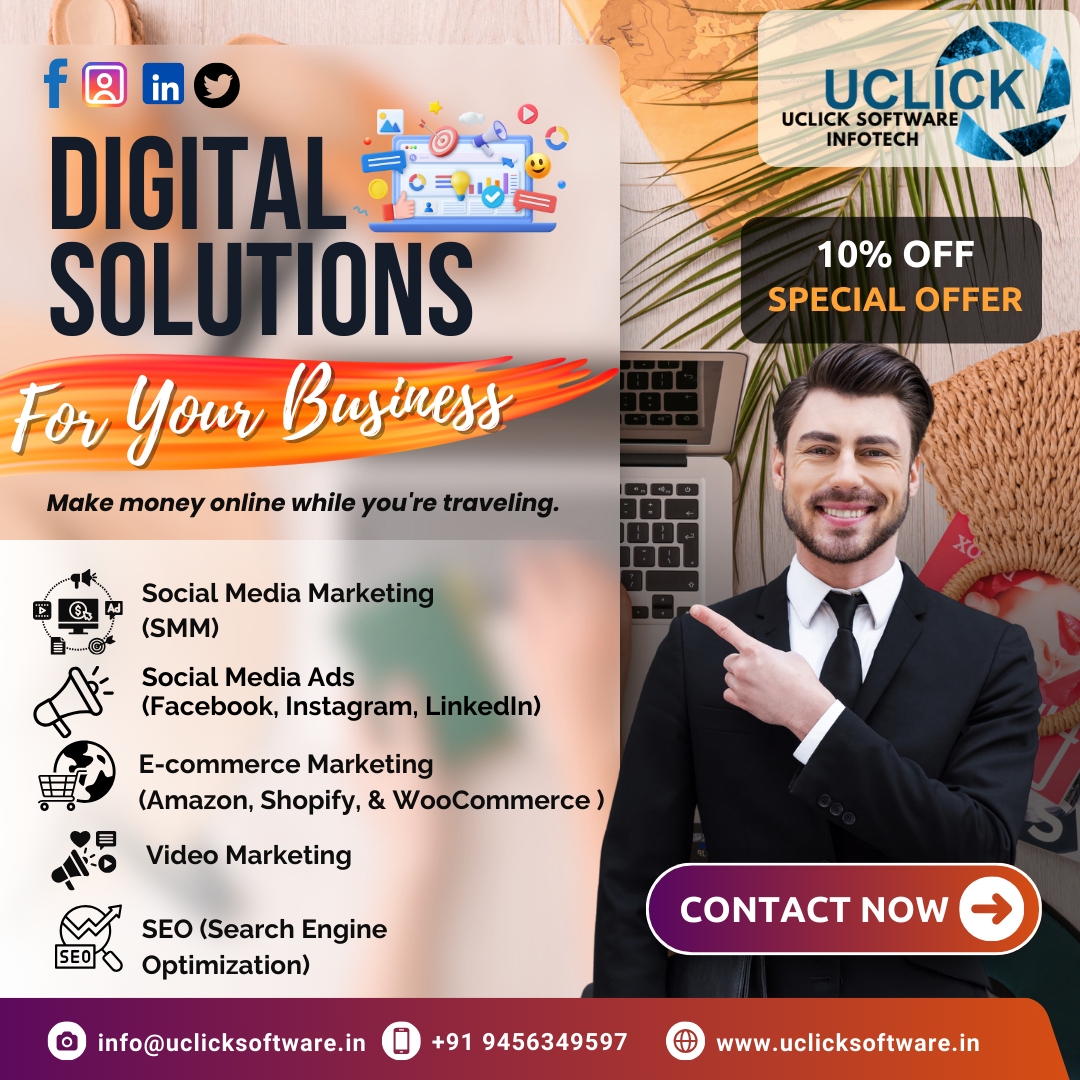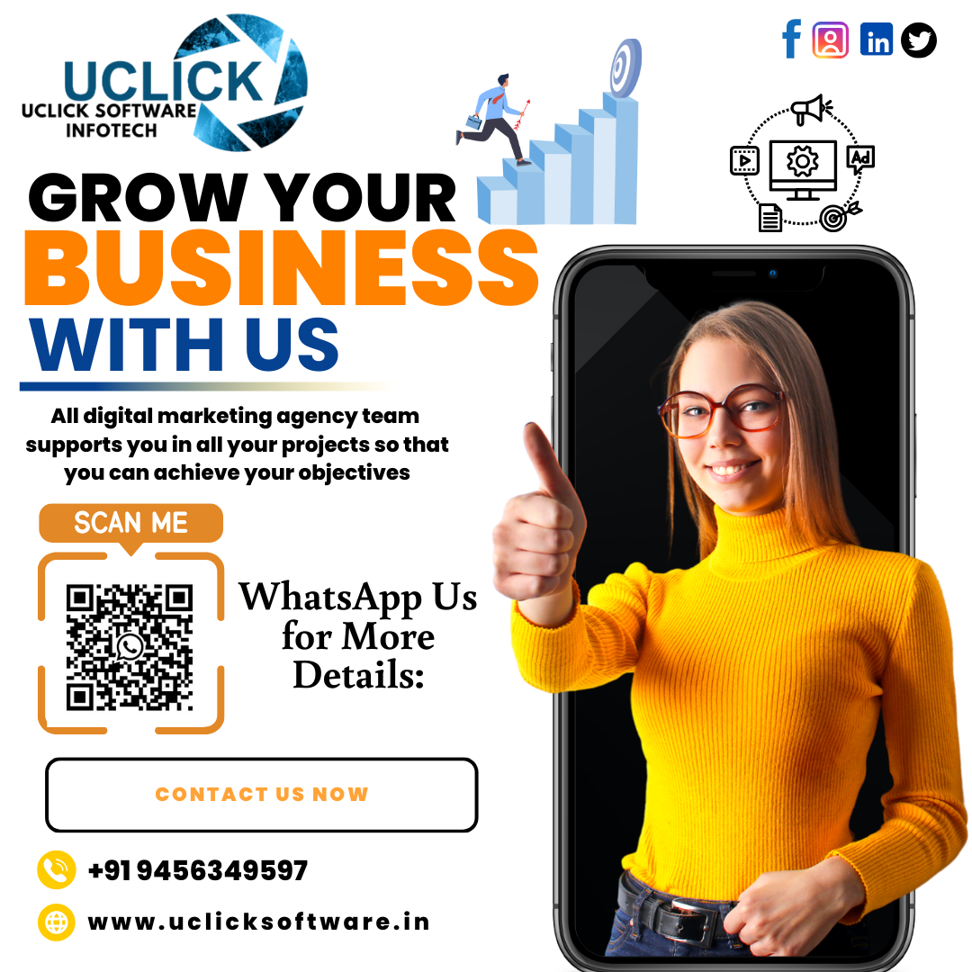 UClick Software Infotech ensures your business not only grows—but thrives—on a larger scale. With our proven strategies, advanced tools, and expert team, we are dedicated to taking your business to new heights, fostering innovation, and driving exponential success in today's competitive market.